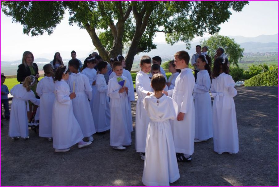 Prvopričesnici ispred crkve uoči početka svete mise