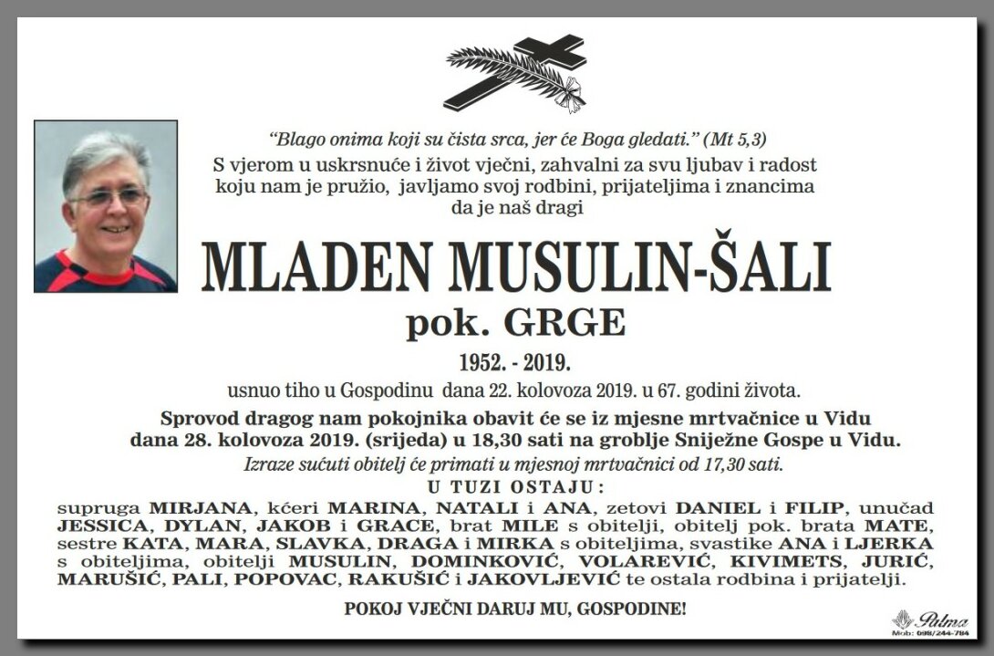 Sprovod pok. Mladen Musulin - Šali 28.08.2019